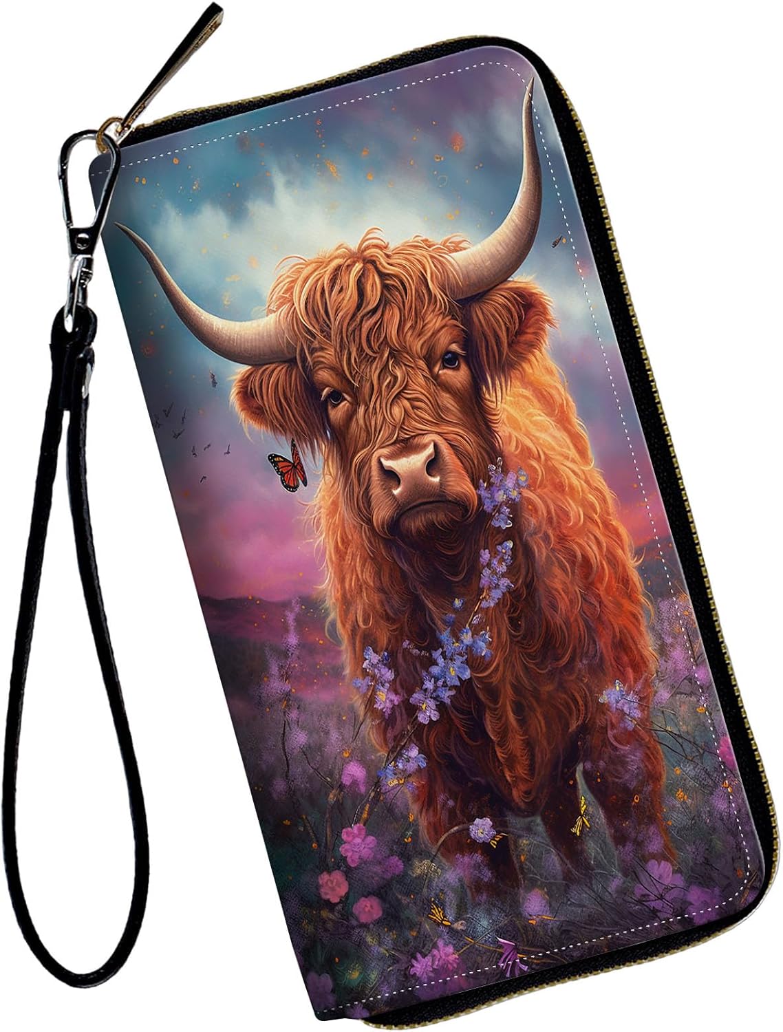Women Wallets,Large Capacity Clutch Purse for Women Ladie Men Wallet Clearance Credit Card Holder PU Leather Handbag Clutch Purse-Cute Highland Cow