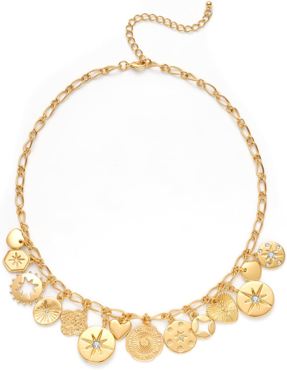LILIE&WHITE Gold Heart Necklaces For Women With Different Heart Charms Gold Charm Sun Heart Necklace Coin Charms Fashion Jewelry Gift