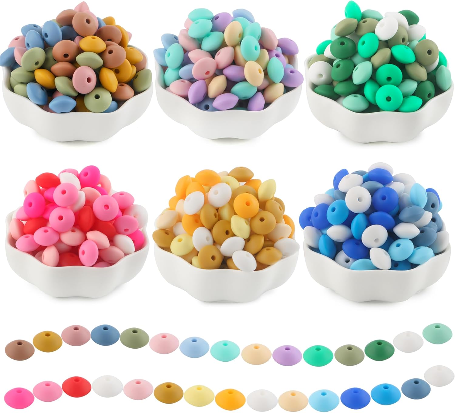 - 【Beads Assortments Contain】You will receive 300pcs lentil silicone beads 12mm with 6 color schemes. These silicone spacer beads Including 23 colors, White silicone beads,Pink silicone beads, Scarlet red silicone beads, Mustard yellow silicone beads, Matcha green silicone beads, Power blue silicone beads, Blush silicone beads, Camel silicone beads, Christmas green silicone beads, etc.