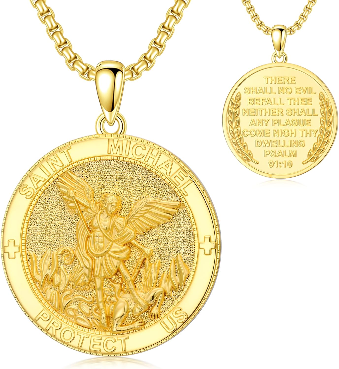 Patron Saint Necklace 14K Gold Medal Catholic Pendant Christian Religious Amulet Jewelry Gift for Men Women