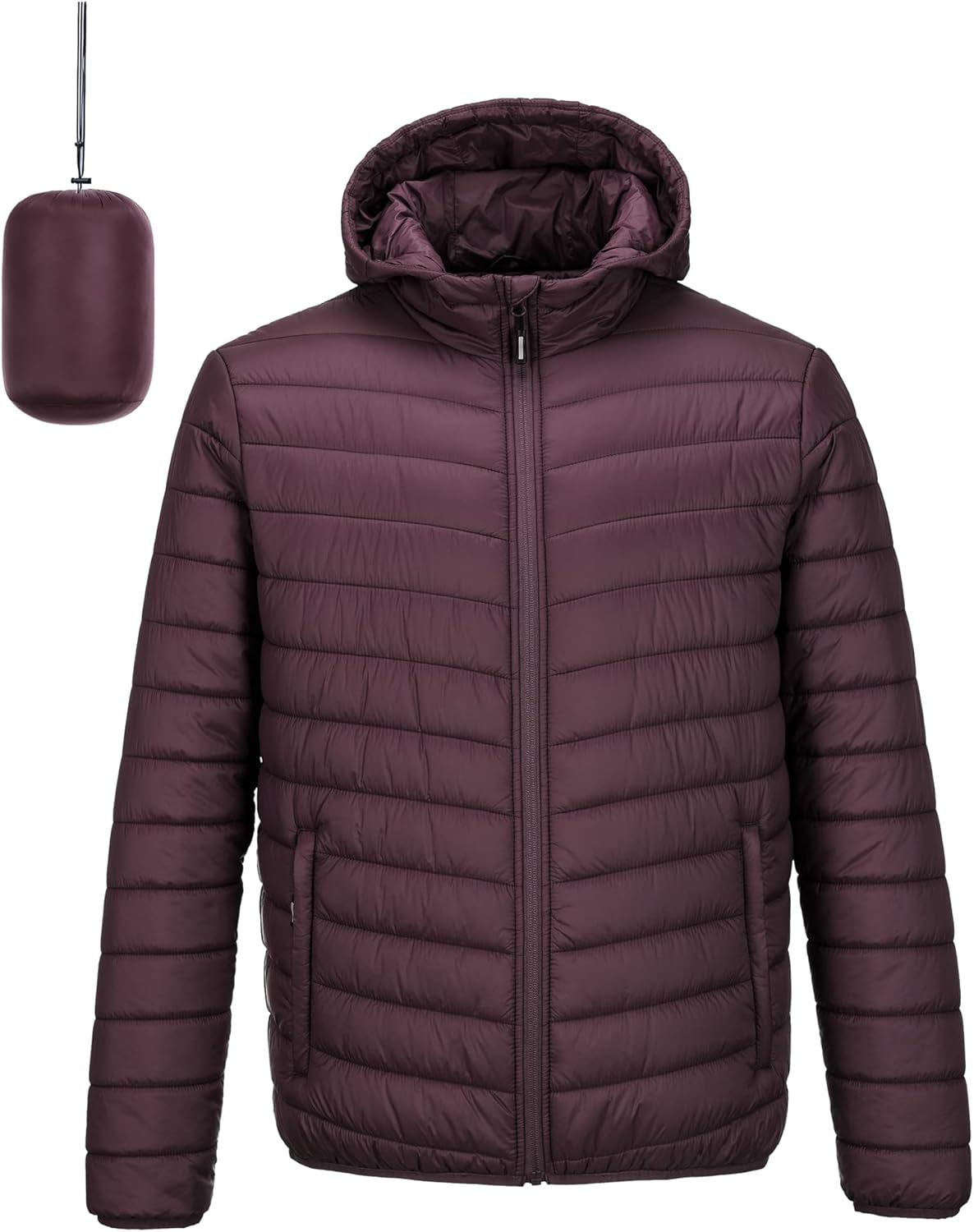 Outdoor Ventures Men's Lightweight Packable Hooded Puffer Jacket Insulated Winter Coat for Snow Ski Traveling