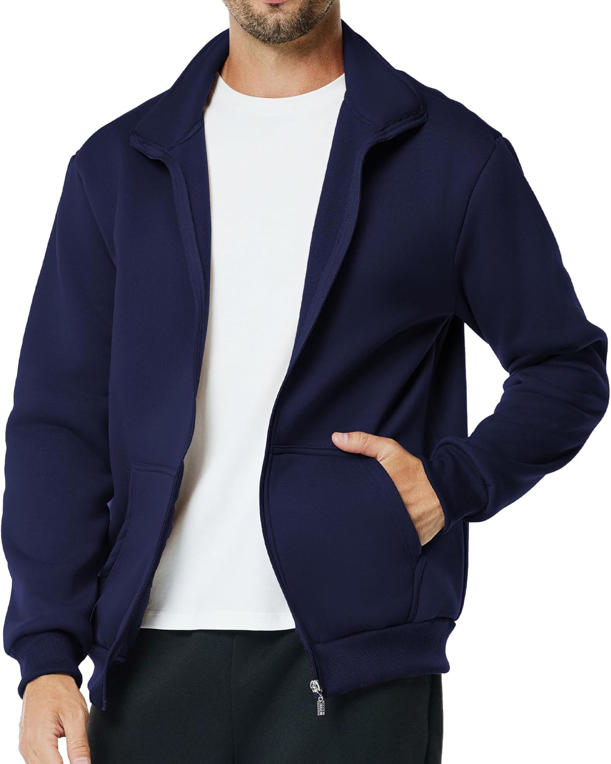 Men's Fleece Full Zip Up Sweatshirt Casual Lightweight Long Sleeve Mock Neck Jackets with Pocket
