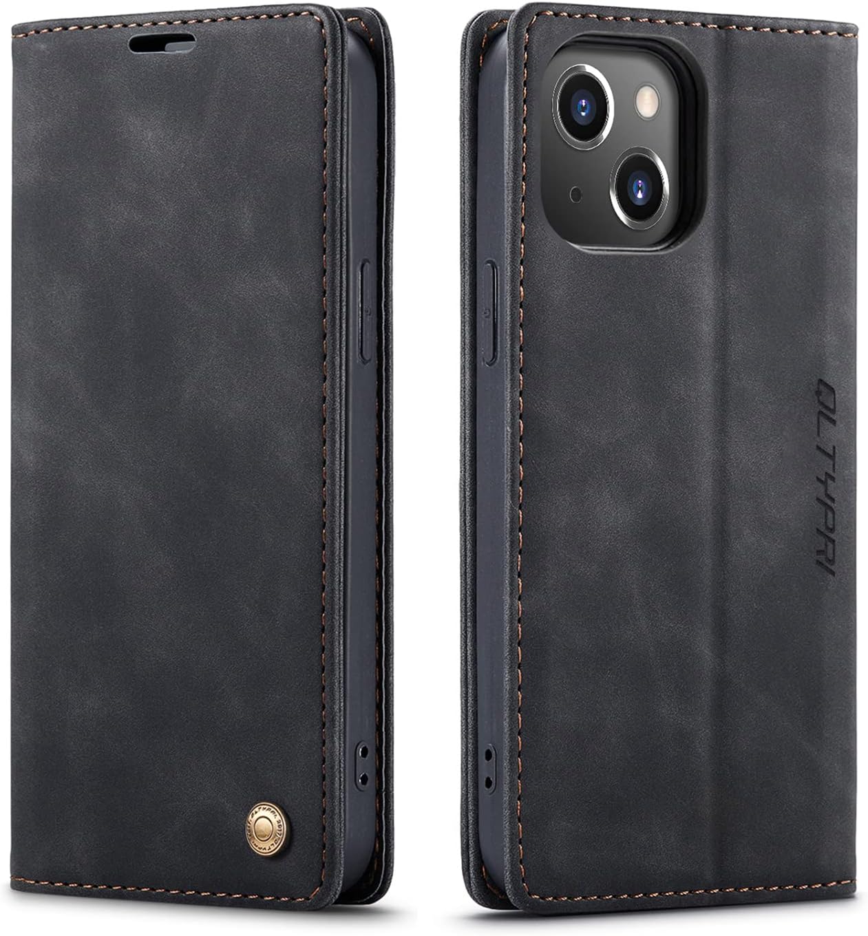 QLTYPRI Case for iPhone 13, Vintage PU Leather Wallet Case Card Slot Kickstand Magnetic Closure Shockproof Flip Folio Book Case Cover for iPhone 13(6.1 inch) - Black
