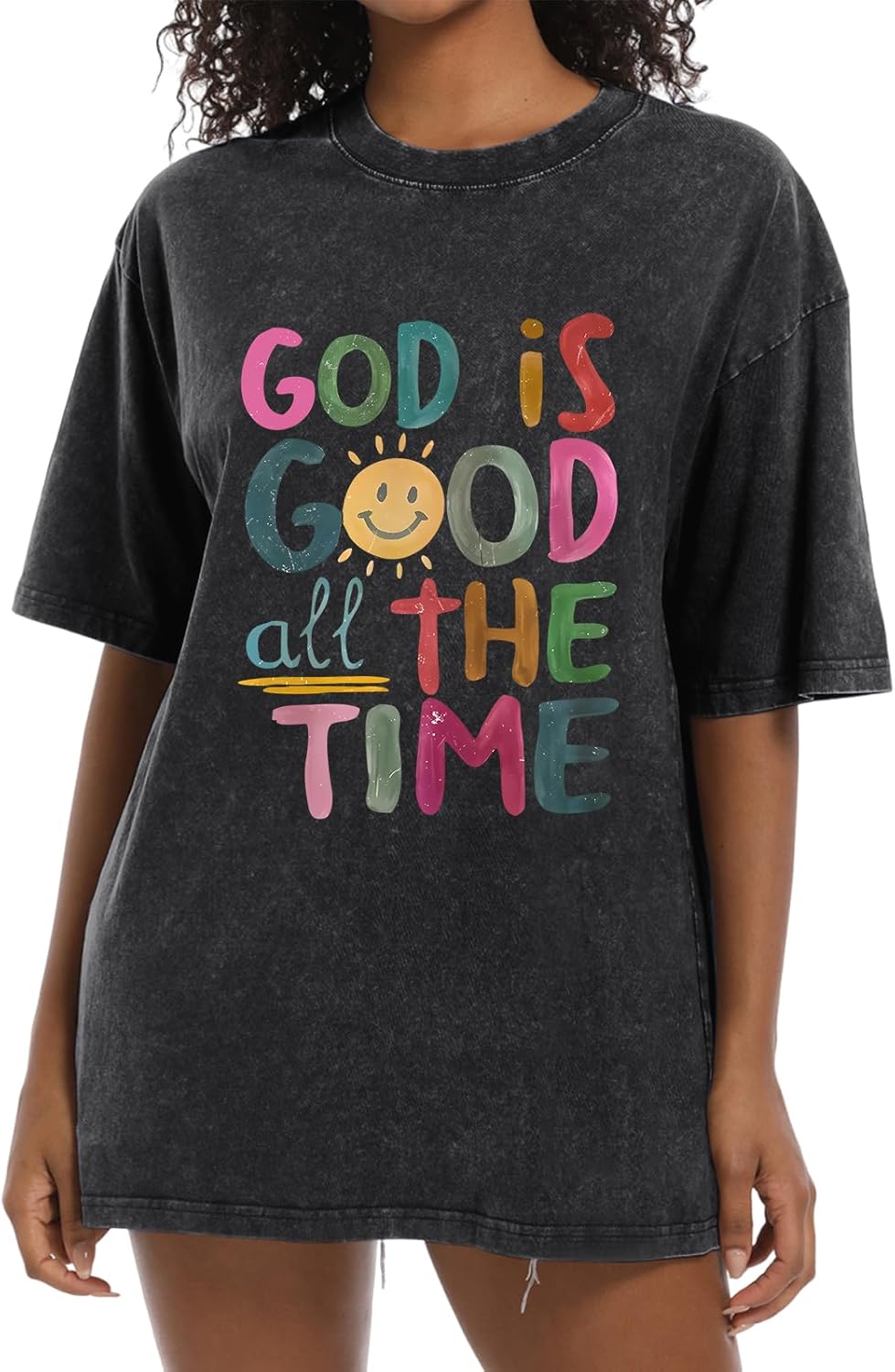 Christian Shirts for Women Oversized God is Good Tshirt Vintage Religious Jesus Tees Inspirational Bible Verse Tops