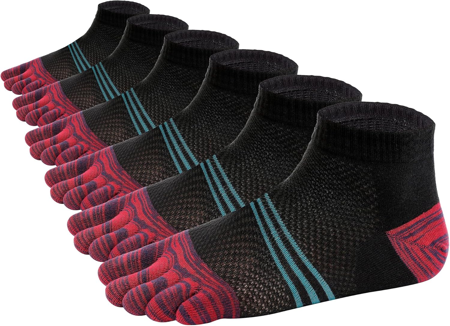 Men Toe Socks No Show Low Cut Athletic Wicking Cotton 5 Finger Split Toe 6 Pack