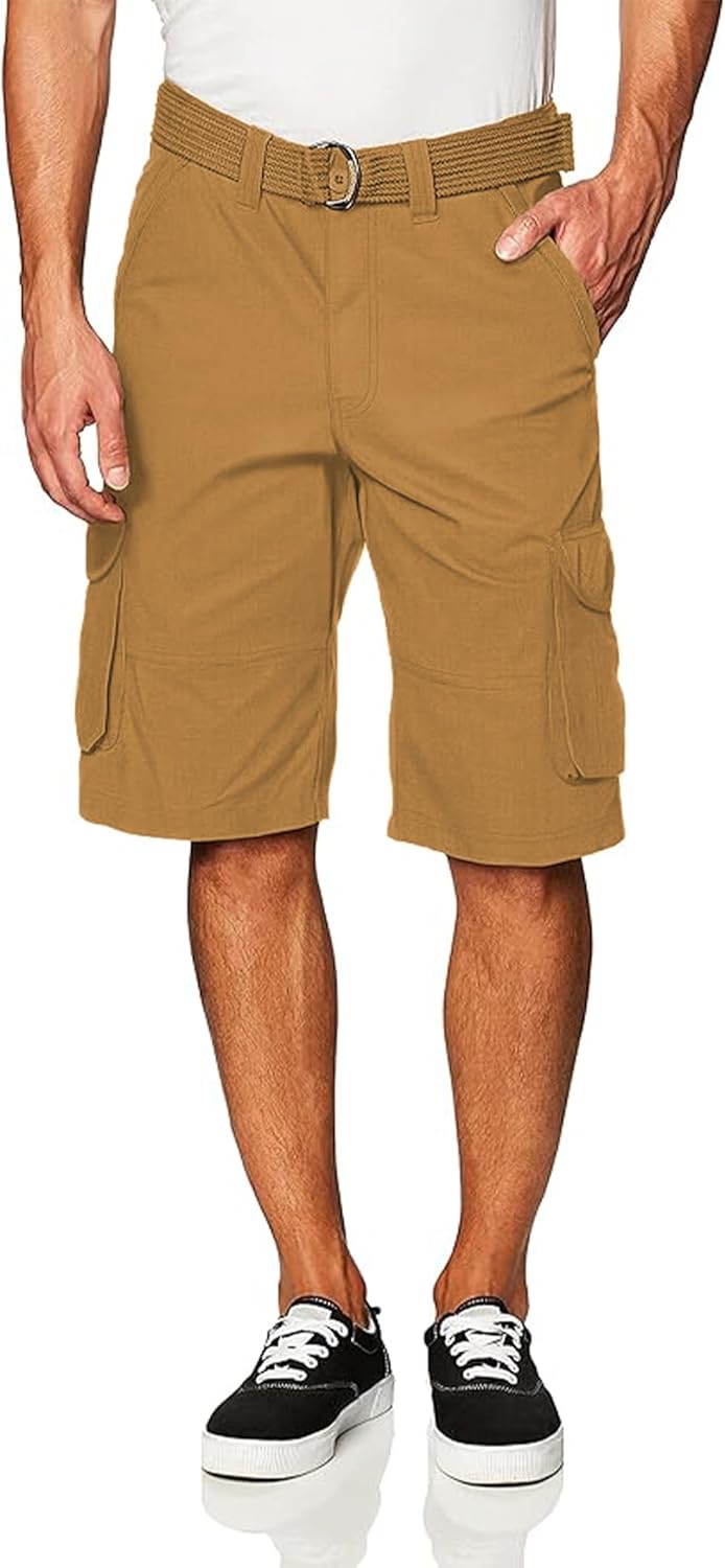 Southpole Men's Multi Pocket Ripstop Cargo Shorts with Belt, Inseam 12"