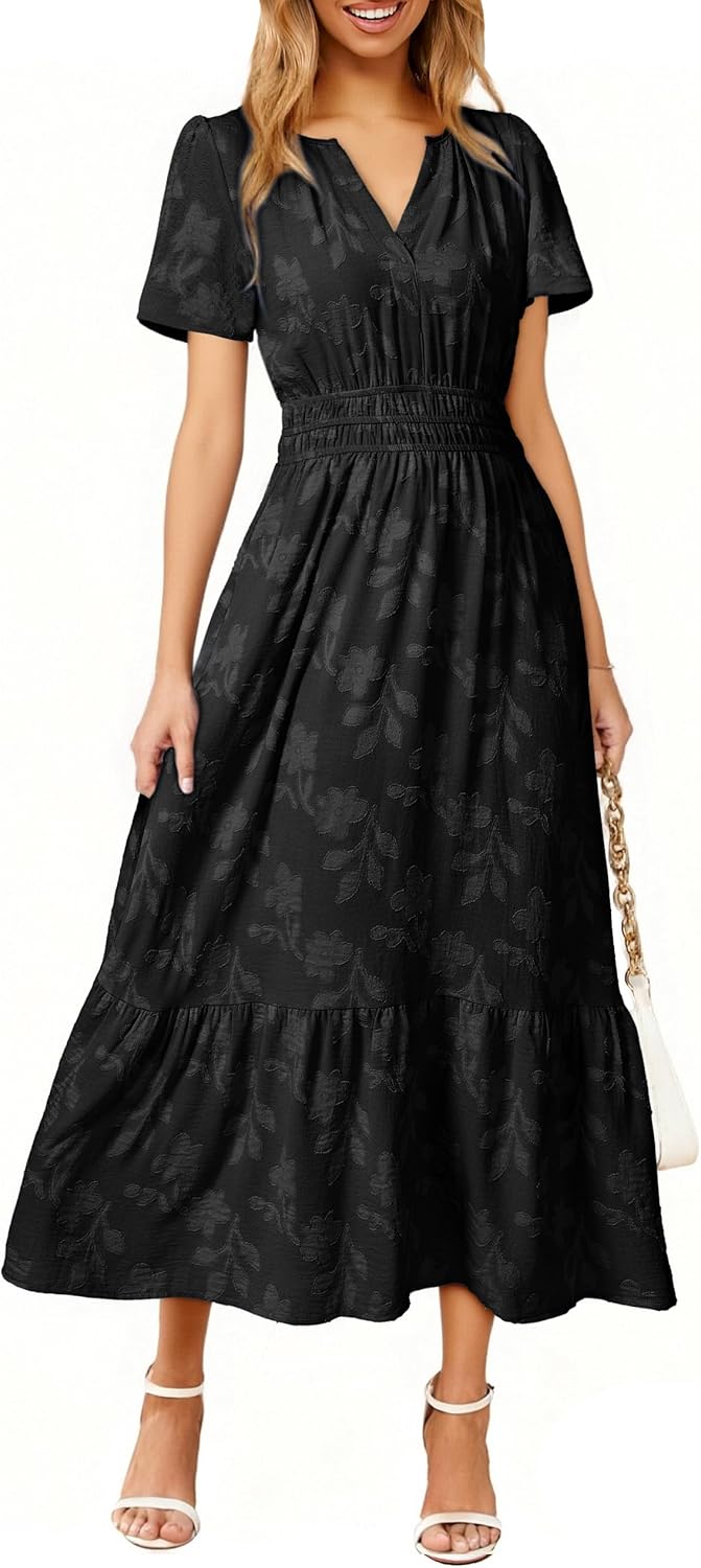 Simplee Womens Summer Boho Maxi Dress Semi Formal Wedding Guest Short Sleeve V Neck Empire Waist Floral Long Dresses