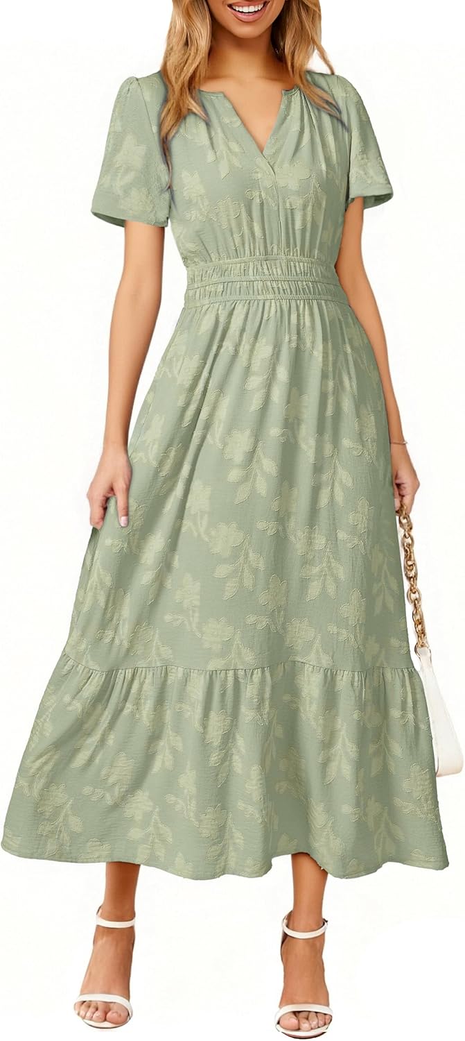 Simplee Womens Summer Boho Maxi Dress Semi Formal Wedding Guest Short Sleeve V Neck Empire Waist Floral Long Dresses
