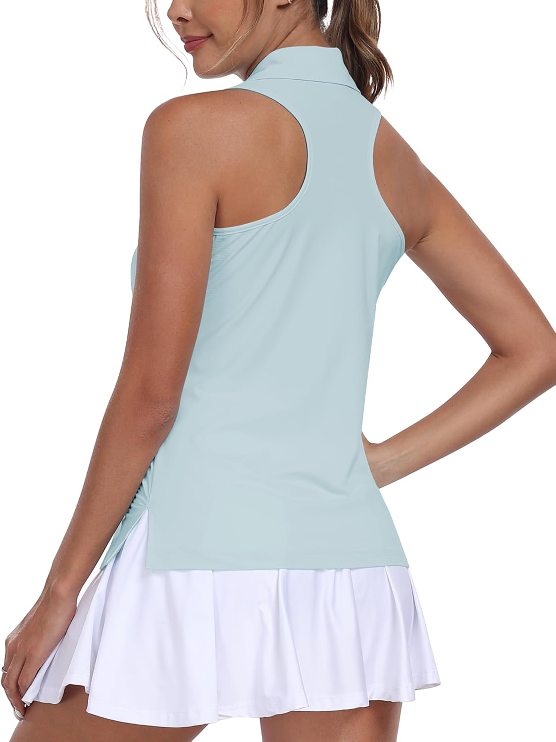 MoFiz Women's Golf Shirts Sleeveless Tennis Tank Tops Racerback Polo V Neck Collared Quick Dry Athletic Tanks