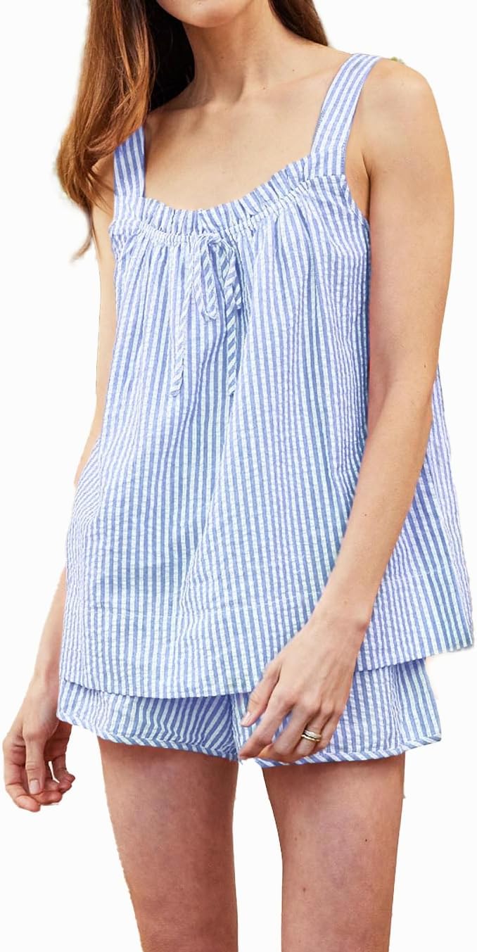 Women Striped Pajama Set 2 Piece Summer Sleeveless Camisole Top and Shorts Set Cozy Lounge Sets