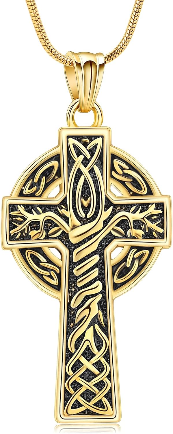 Cross Urn Necklace for Ashes for Men Celtic Knot Cremation Jewelry Keepsake Necklace Tree fo Life Memorial Pendant for Ashe Holder