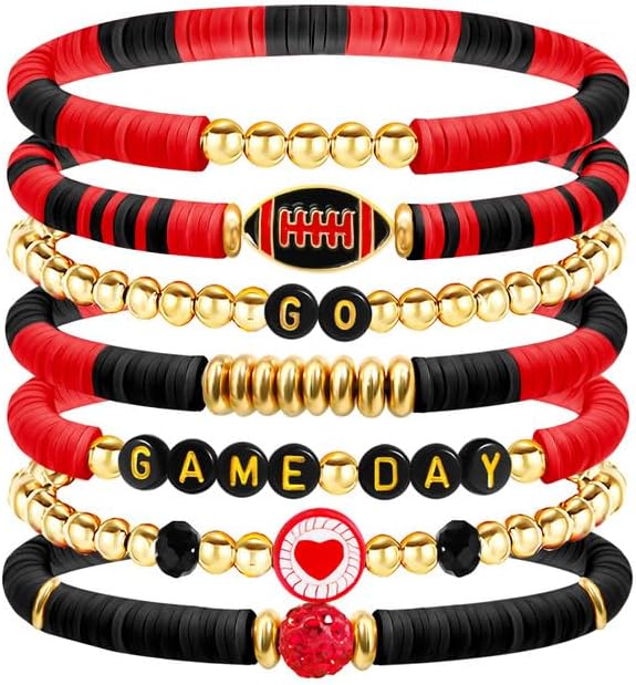 Football Bracelets for Women Game Day Bracelets for Women Beaded Sports Bracelets Clay Heishi Stackable Stretch Bracelets Set Game Day Outfits Accessories Football Bracelets Bulk Football Jewelry