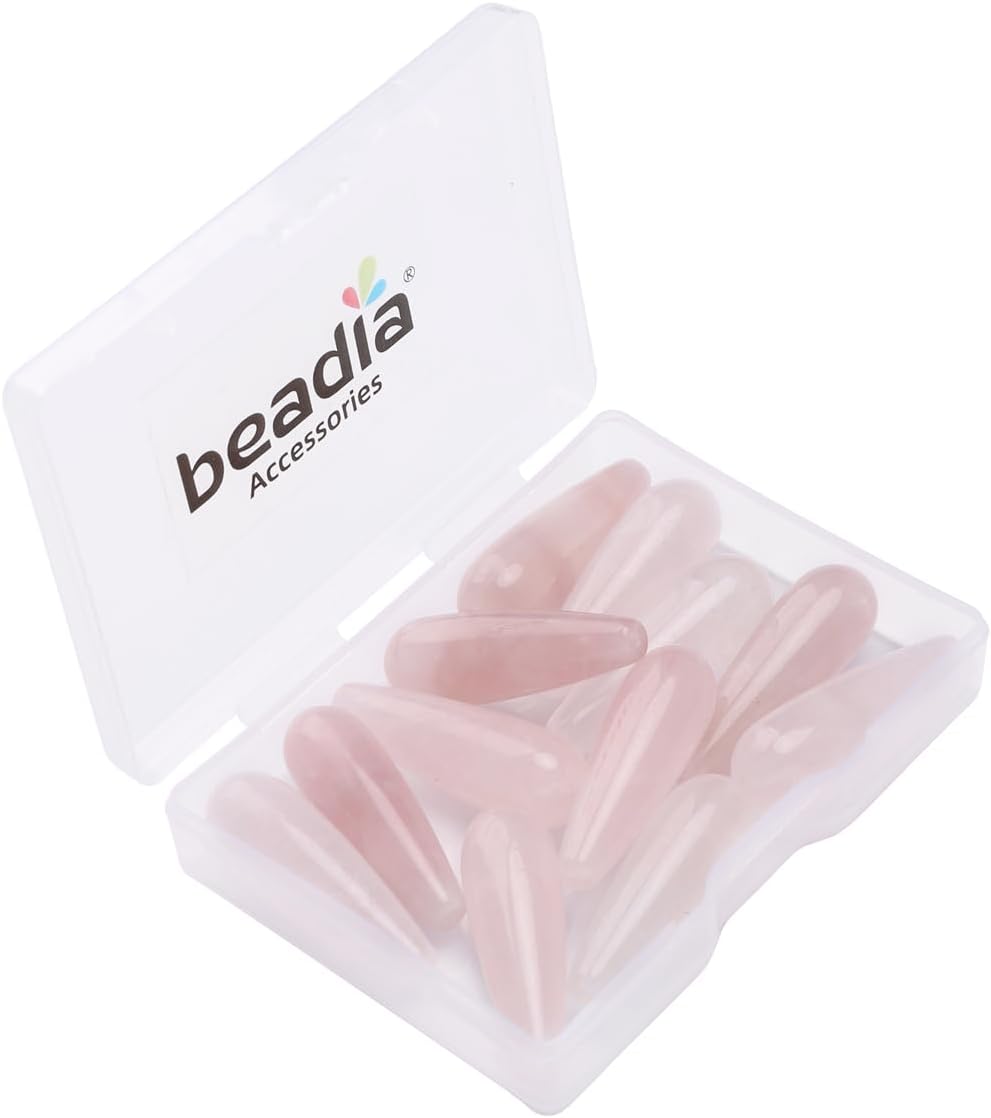 Natural Rose Quartz Teardrop Stone Beads 10x30mm 12pcs Dangle Earring Charm for DIY Jewelry Making