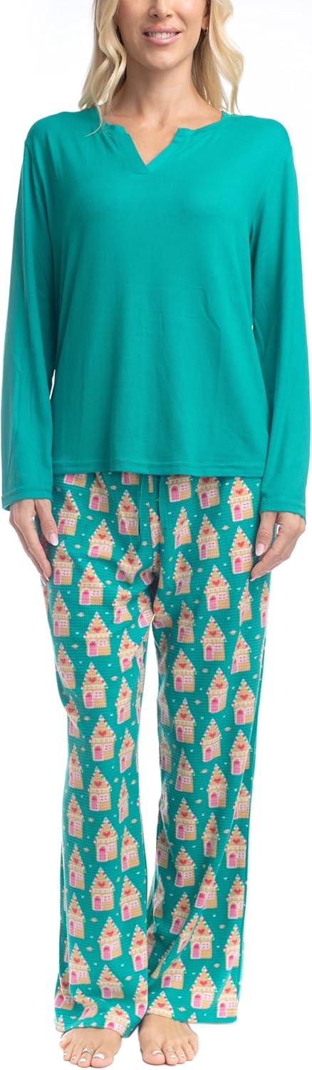 Goodnight Kiss 2 Piece Women's Loungewear, Soft Butter Knit Pajama Set, Ladies Fleece Pajamas with Pockets