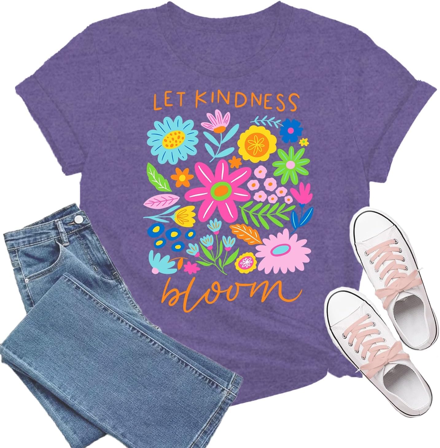 TIEEI Be Kind Shirt Women Let Kindness Bloom T-Shirts Cute Floral Tee Tops