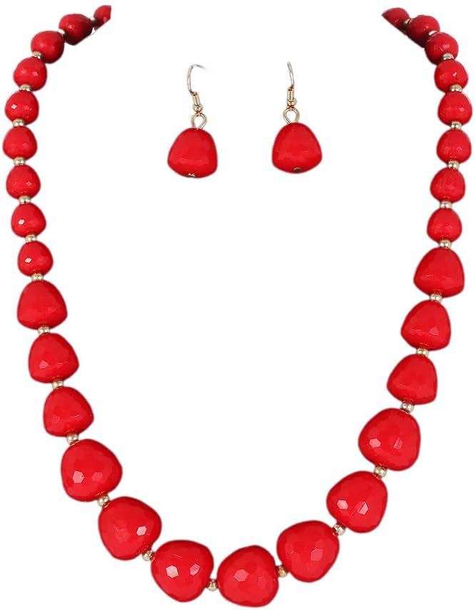 Caiyao Colorful Acrylic Irregular Beaded Choker Necklace Earrings Set Bohemian Multicolor Resin Beaded Sweater Necklaces Geometric Ethnic Costume Statement for Women Party Wedding Jewelry Gifts