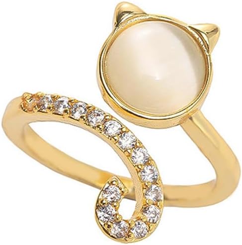 OIDIMS Cat Adjustable Rings for Women Open Stacking Statement Rings Dainty Gold-Tone Plated Crystal Cat Eye Stone Lovely Kitten Animals Wrap Ring Jewelry Gifts for Pet Lover Mom Holiday Party