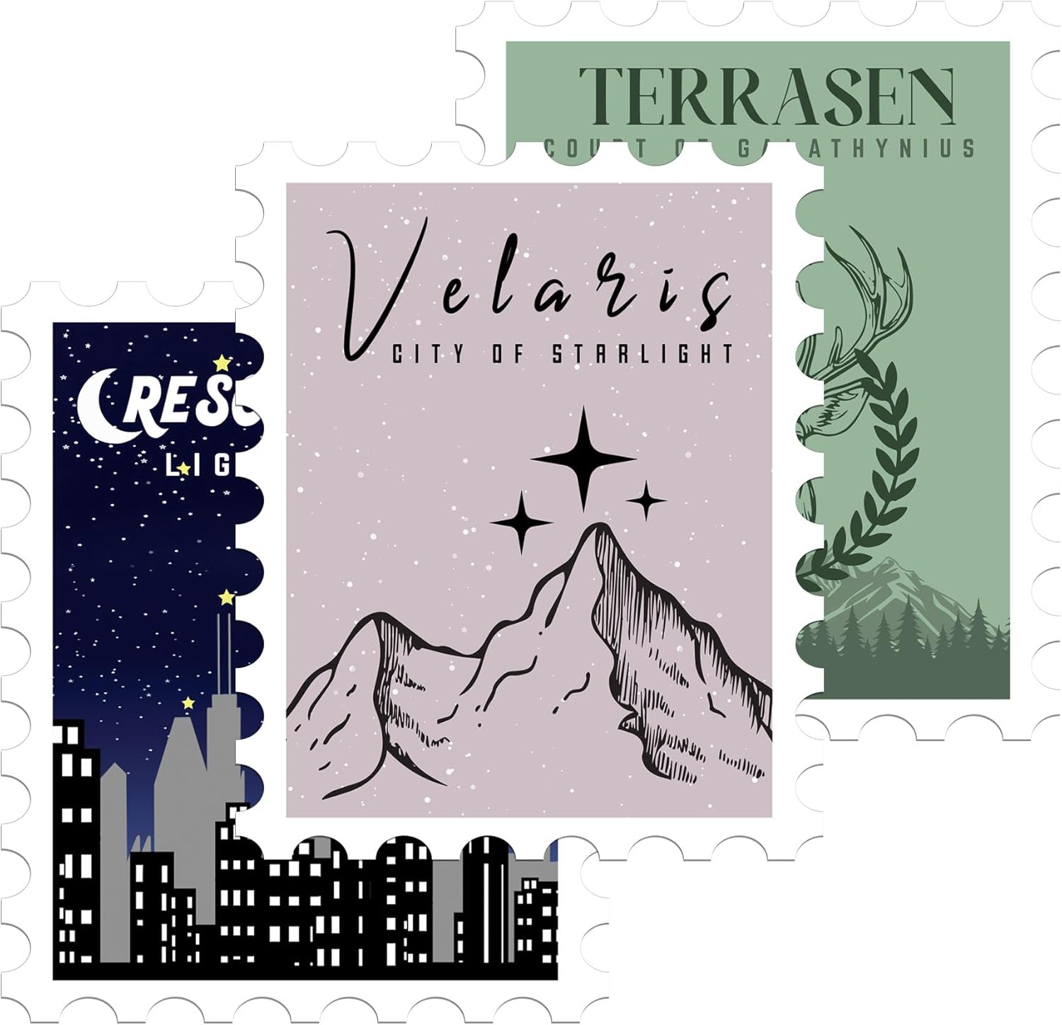 Set 3 Pcs 2 Inches - Cities Stamp - Velaris City of Starlight Stickers Terrasen Court of Galathynius Crescent City 2" Waterproof Vinyl Decal for Water Bottles Tumbler Laptop Car Gift for Girl Kid Boy