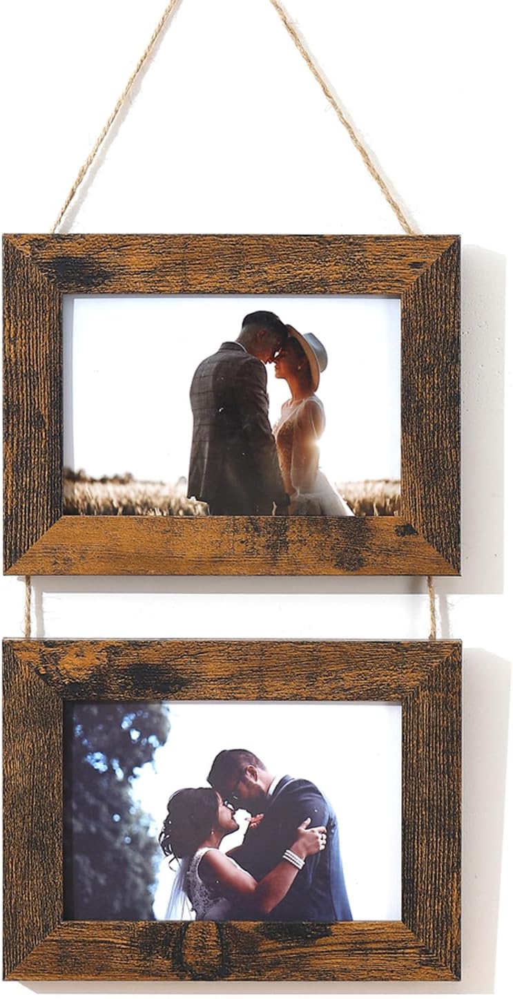 4x6 Wall Hanging Picture Frames,Brown 2 Opening Collage Photo Frames.