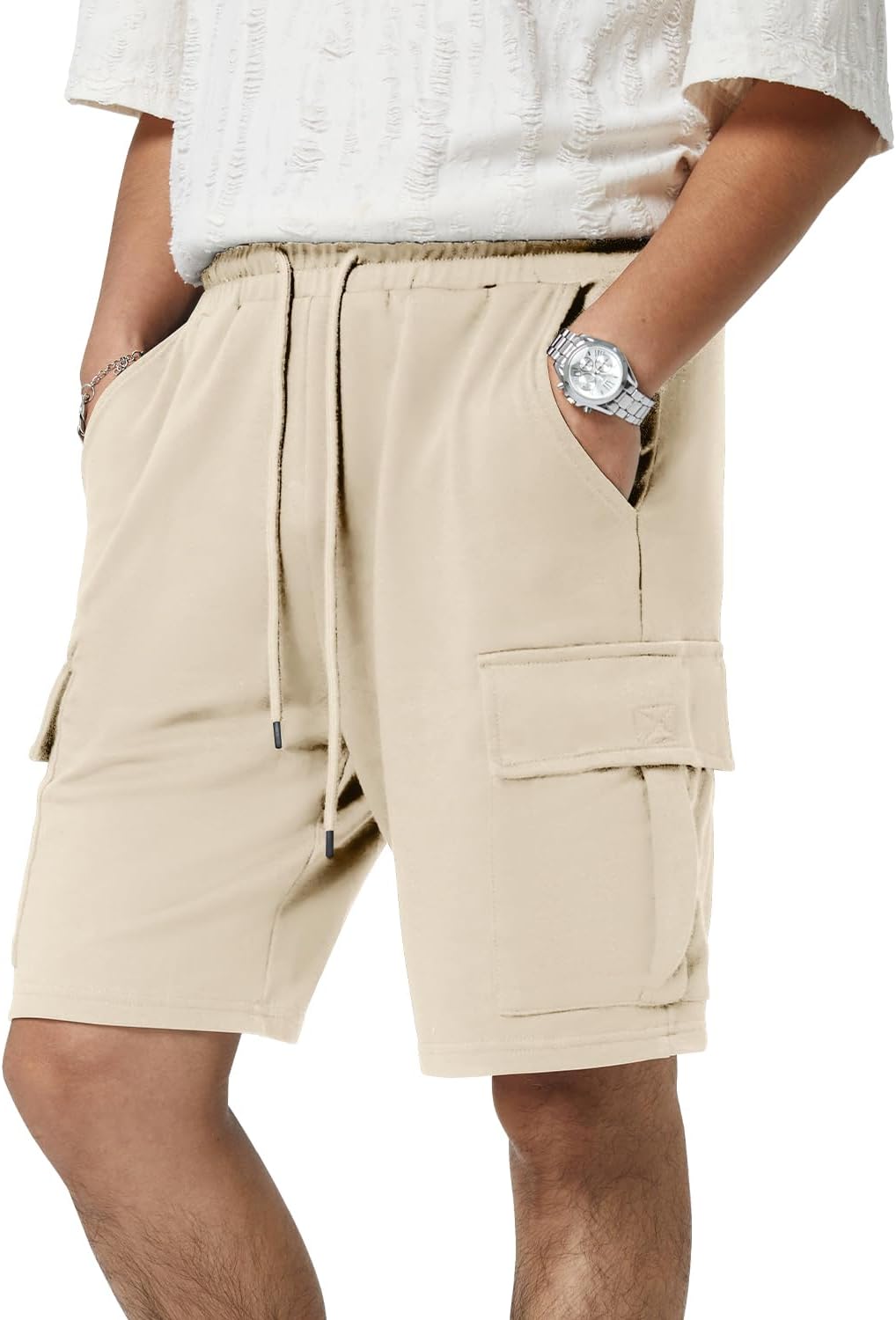 Mens Casual Sweat Cargo Cotton Shorts Drawstring Elastic Waist Athletic Workout Gym Jogger Shorts with 5 Pockets