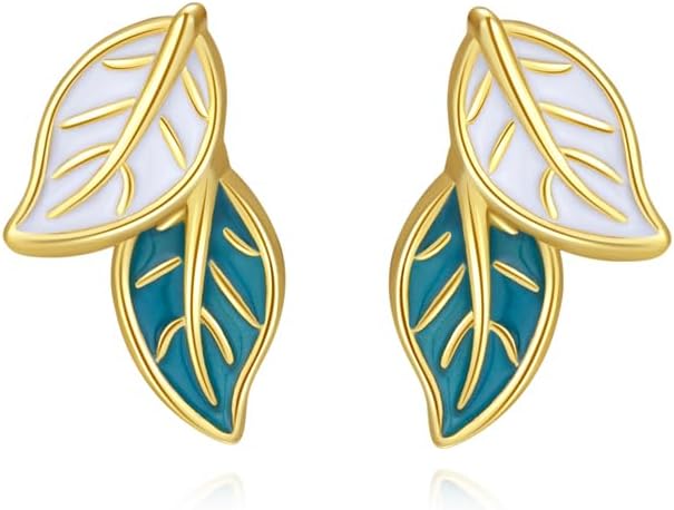 Reffeer Solid 925 Sterling Silver Small Leaf Stud Earrings for Women Teen Girls Blue Leaf Stud Earrings Spring