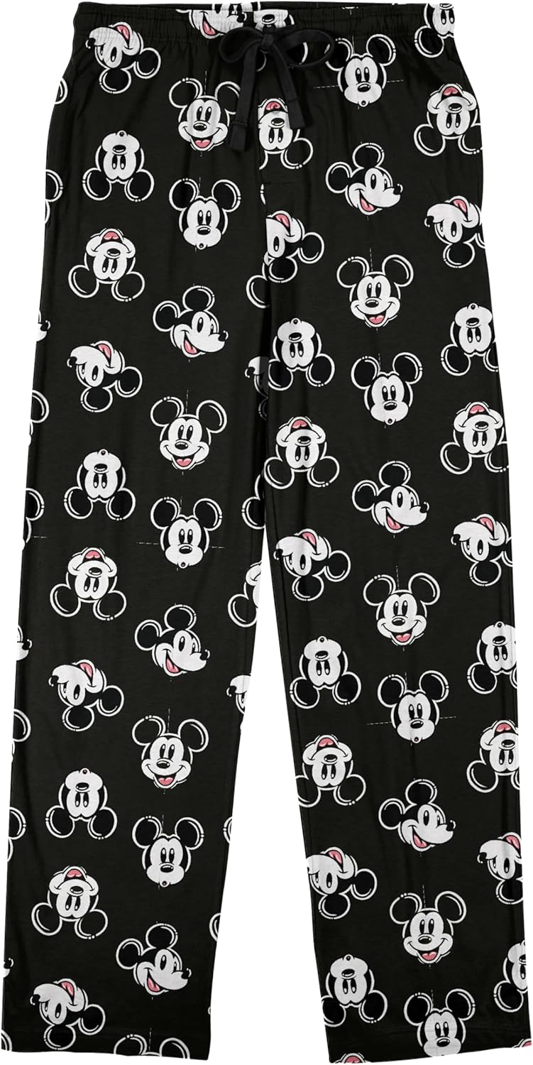 Disney Mickey Mouse Character Heads All-Over Print Men's Black Sleep Pajama Pants