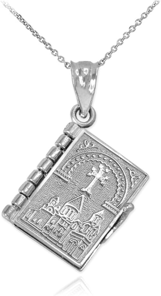Religious Jewelry Polished Sterling Silver 3D Armenian Holy Bible Book w/Lord's Prayer Pendant Necklace