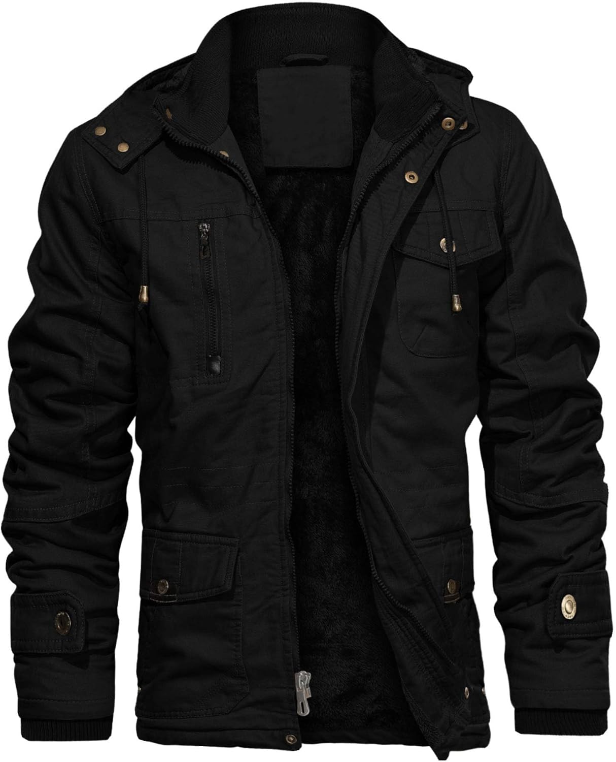 CHEXPEL Men's Thick Winter Jackets with Hood Fleece Lining Cotton Military Jackets Work Coats with Cargo Pockets Outwear