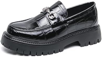Men's Leather Printed Platform Slip-On Penny Loafers Fashion Round Toe Metal Decoration Non-Slip Lug Sole Business Dress Shoes for Driving Office Party