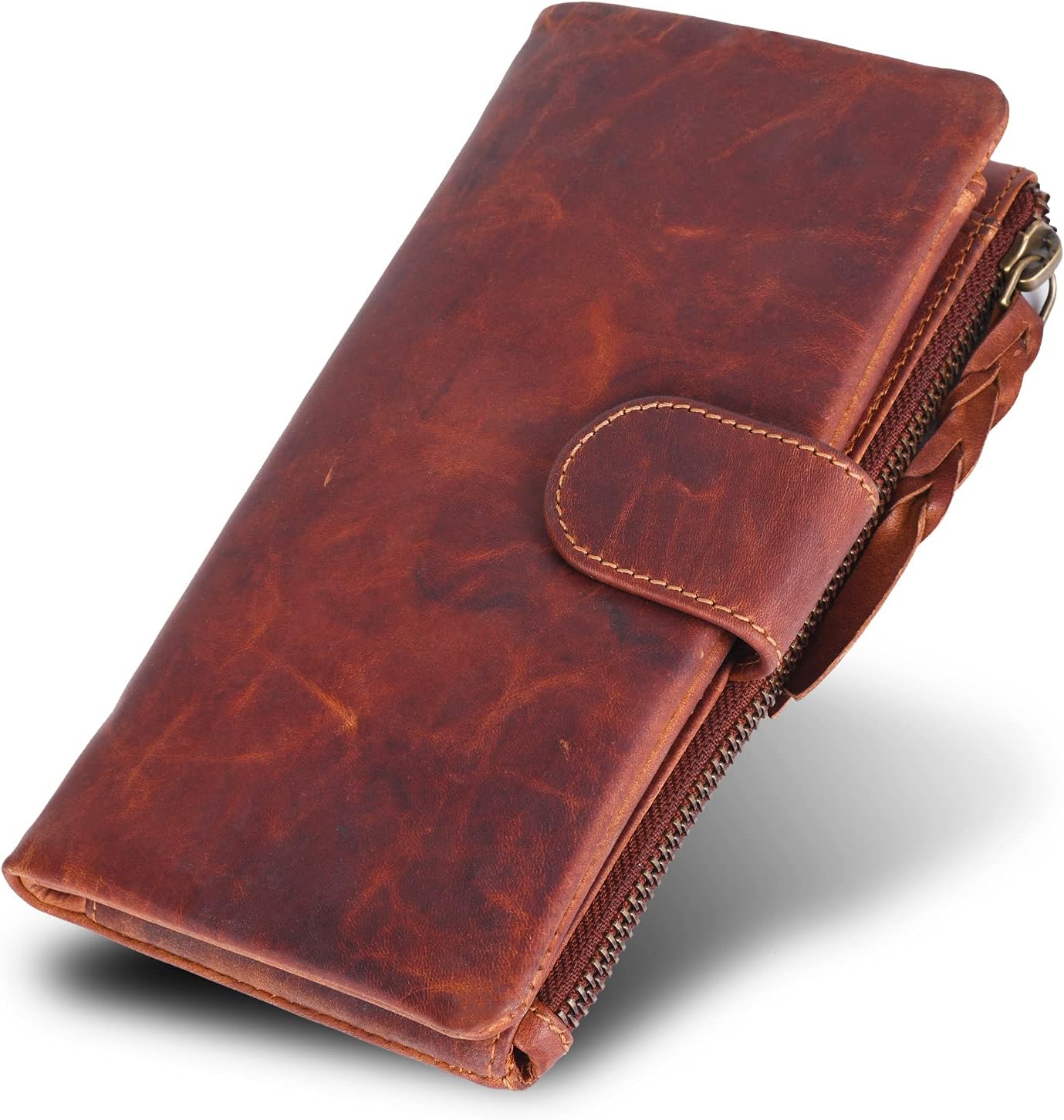 VALENCHI-Soft and Flexible Genuine Leather Ladies Wallet with Metal Zipper and Snap closer (Cognac Vintage)