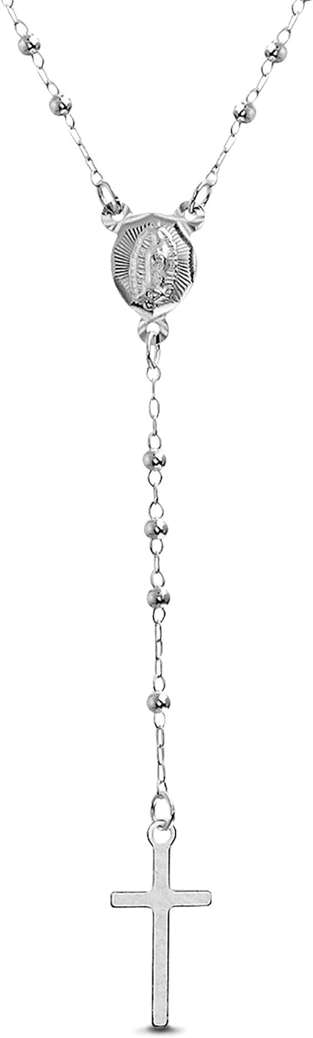 Polished 2mm Bead Cross 18 Inch 925 Sterling Silver Rosary Necklace for Women
