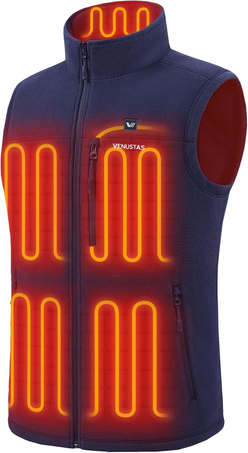 Venustas Men's Heated Fleece Vest with 6 Heating Zones, Lightweight Recycled Electric Fleece Vest