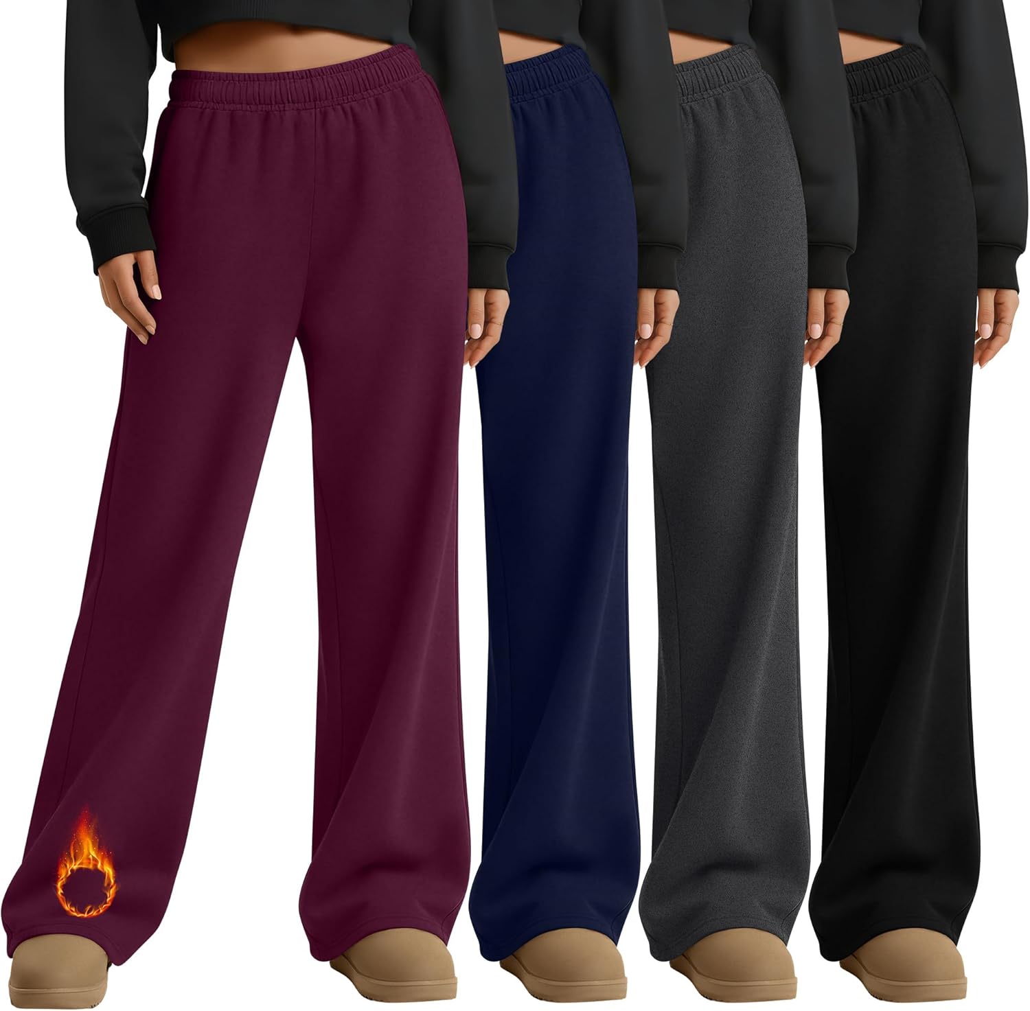 4 Pack Women's Fleece Straight Leg Sweatpants, Open Bottom Thermal Baggy Pants Lounge Drawstring Pants with Pockets