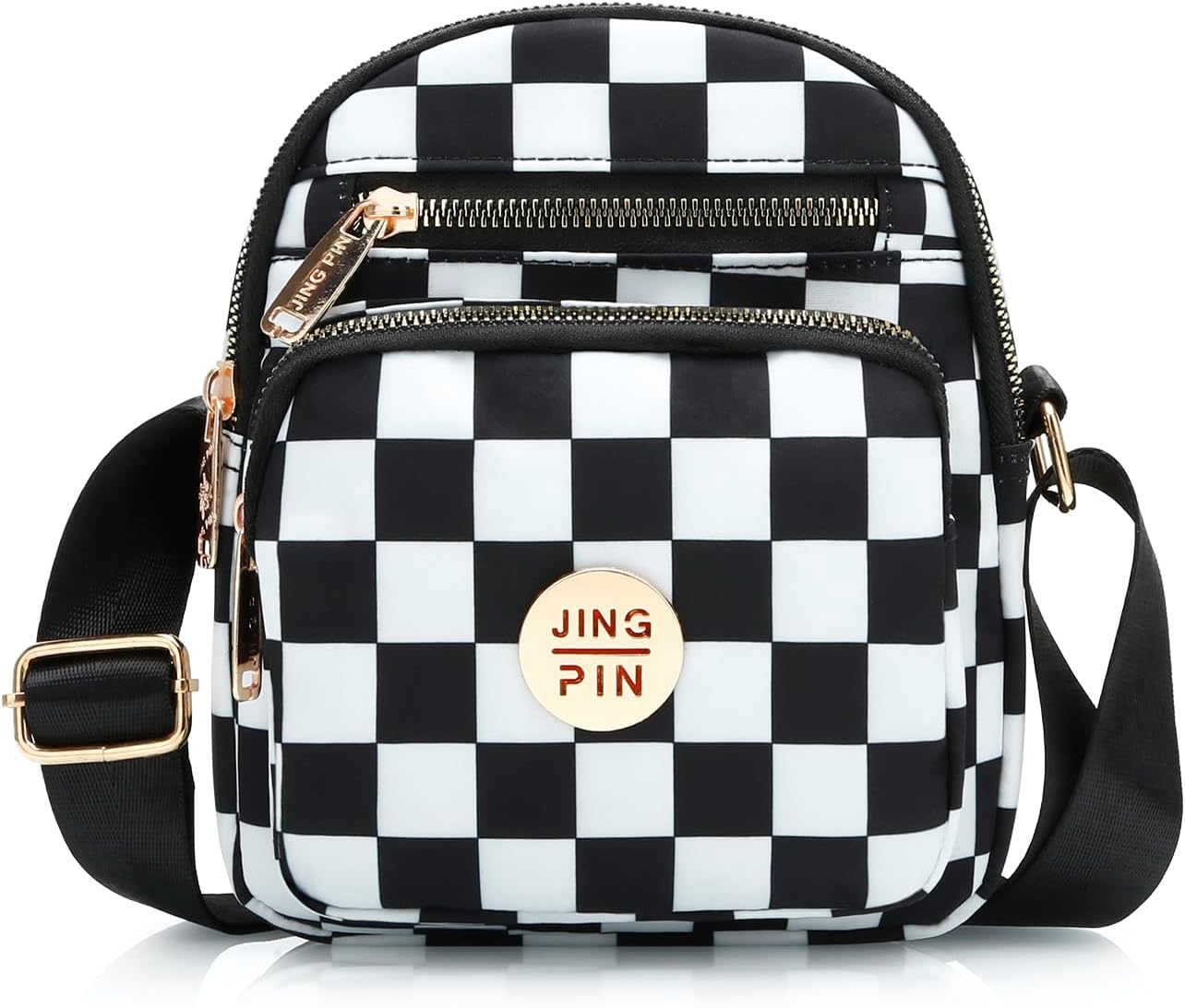 DOB SECHS Checkered Purse for Women Crossbody Bag Multi-pockets Small Messenger Bags for Travel Shoulder Bag Plaid Purse, Black and White Checkboard