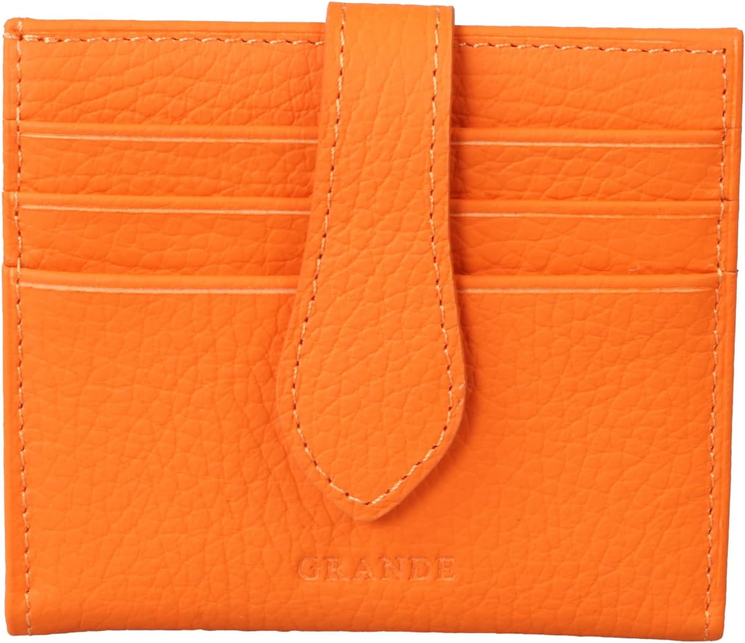 grande 3803 Genuine Leather Card Holder For Women and Men Slim Minimalist Card Case Small Snap Wallet (Orange)