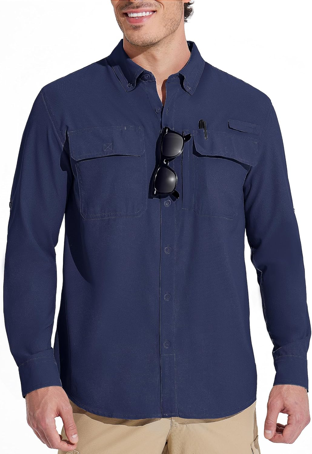 MAGCOMSEN Men's Sun Protection Fishing Shirts Long Sleeve UPF 50+ Quick Dry Cooling Button Down Shirt for Hiking Safari