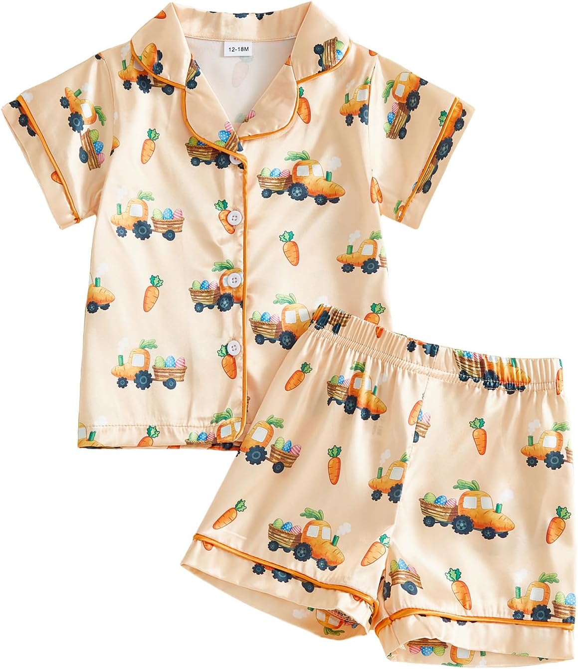 Kuriozud Kids Toddler Boy Easter Pajamas Short Sleeve Button Down Shirt Top and Shorts 2pcs Pjs Sets Sleepwear