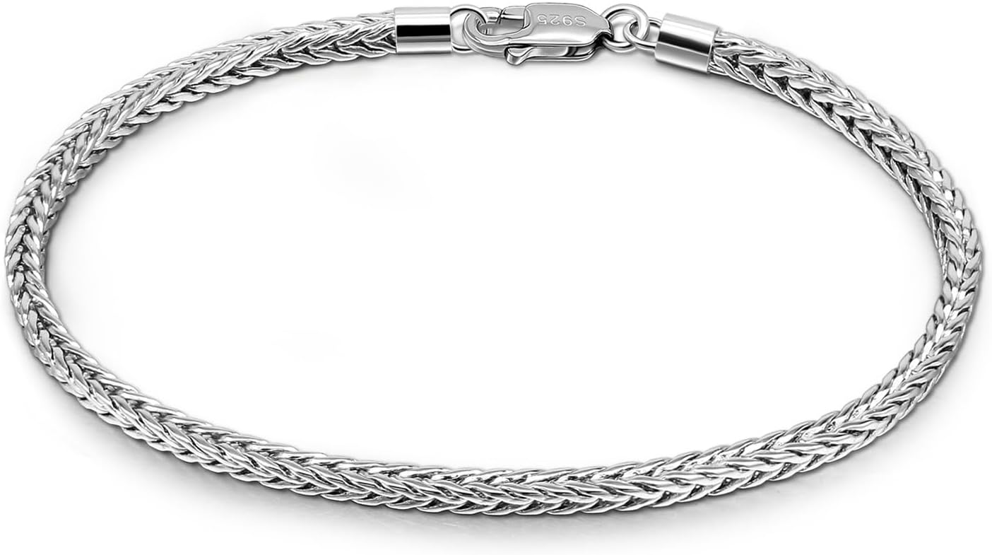 Dainty 925 Sterling Silver Chopin Chain Bracelet Women Bohemian Stackable Figaro/Box/Snake Bracelet 2MM 5 "5.9" 6.3 "6.7" 7 "7.5" 8" Jewelry Gift