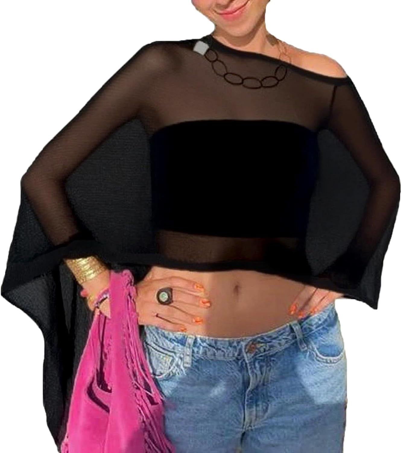 Bocymolay Women Sheer Poncho Shrug Bolero Lightweight Knit Top Summer Cover Up Pullover Shrugs Shawl Sweater