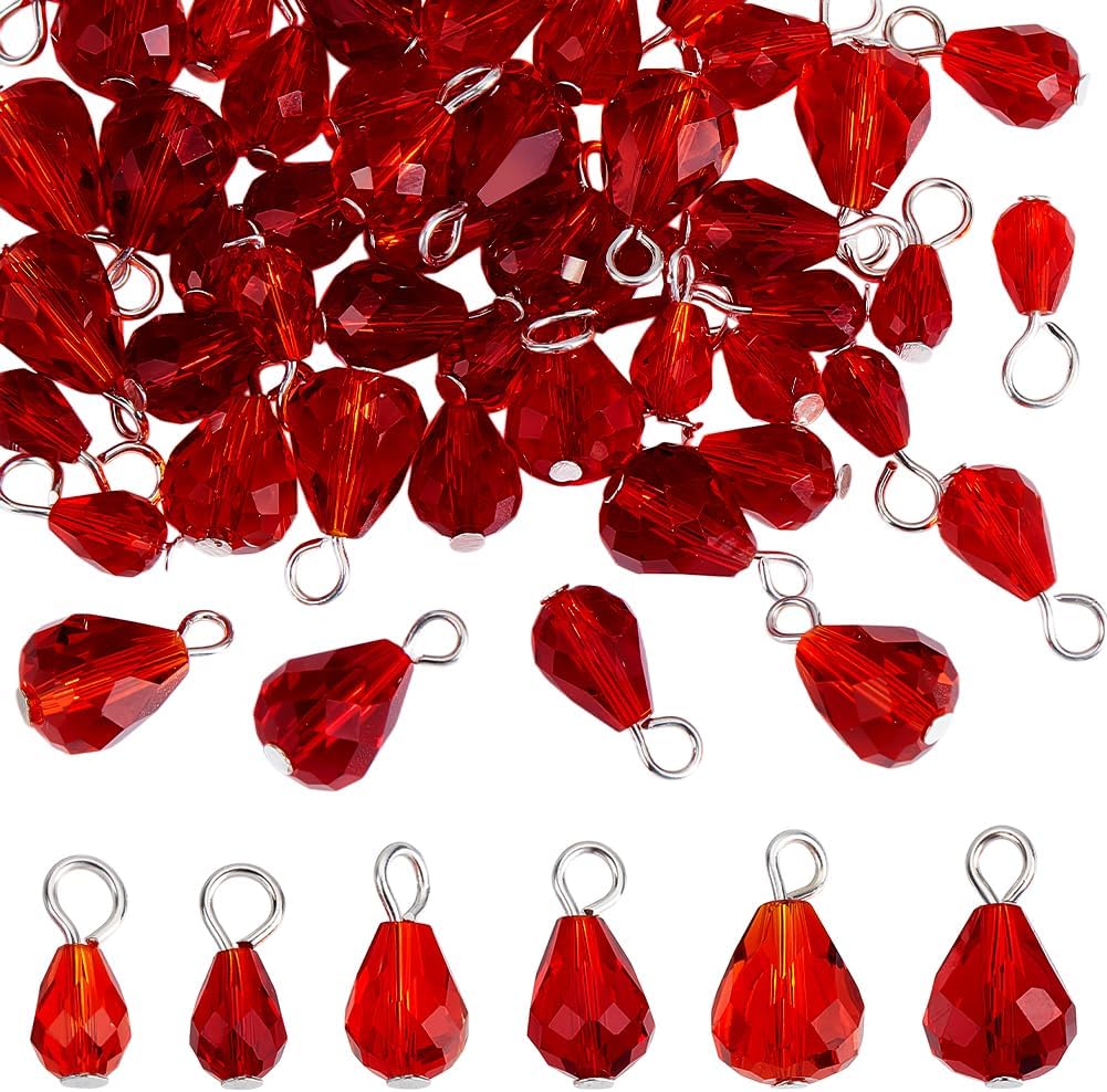 WADORN 60Pcs 6 Styles Faceted Teardrop Charms, Red Crystal Teardrop Charms Drop Pendant with Loop Rhinestone Glass Drop Shaped Dangle Charms Beads for DIY Bracelet Necklace Jewelry Making