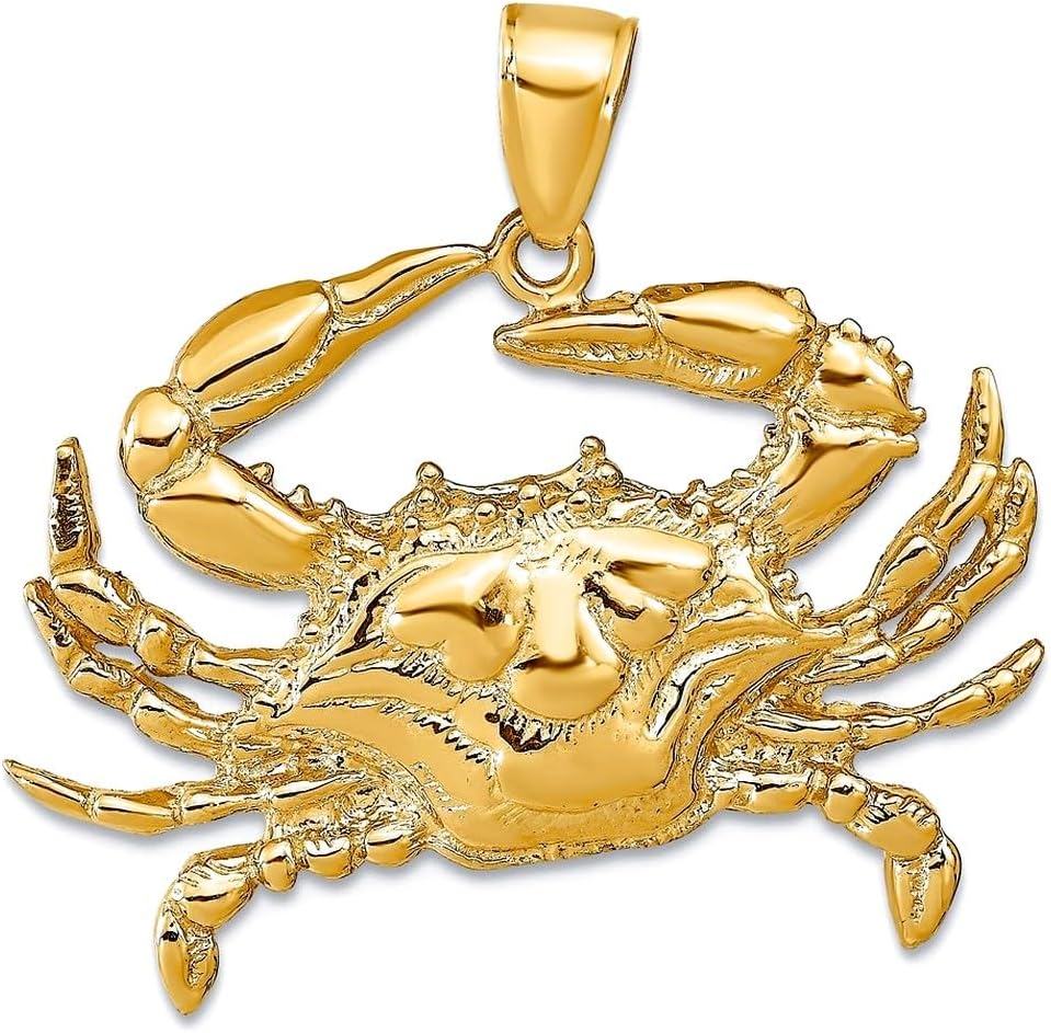 JewelryWeb 14k Yellow Gold Polished Blue Crab Pendant Necklace 30x31mm Wide Pendant for Women