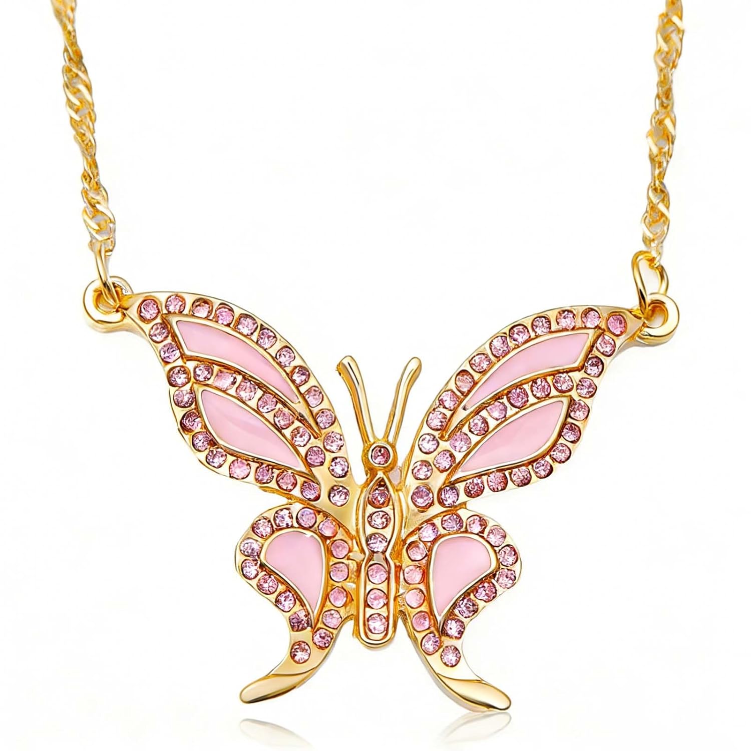 Andelaisi Large Crystal Butterfly Necklace Vintage Butterfly Pendant Necklace Enamel Butterfly Necklaces Chain Rhinestone Butterfly Chain Necklaces for Women