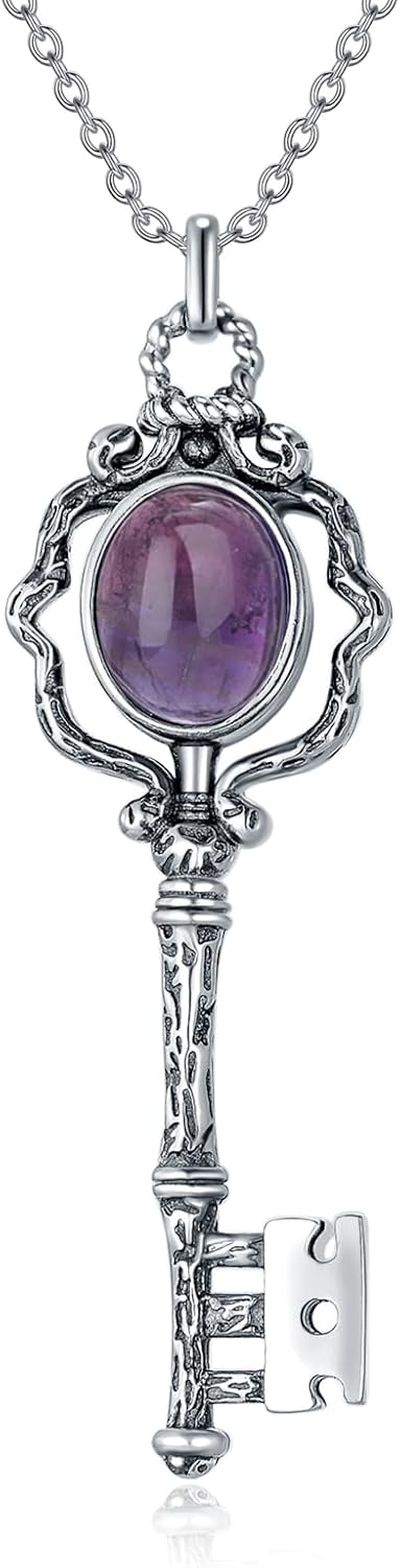 Key Neckalce 925 Sterling Silver Vintage Key Pendant Gemstone Jewelry Gift for Women