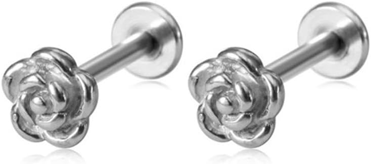 2Pcs 16G Rose Labret Monroe Lip Rings for Women Stainless Steel Conch Helix Daith Cartilage Flat Back Earrings Studs Internally Threaded Medusa Body Piercing Jewelry 8mm