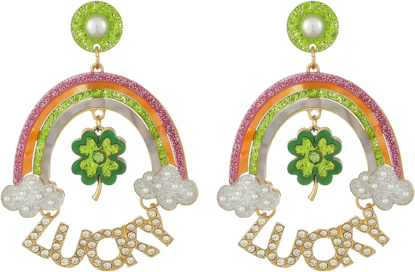 Madison Tyler St.Patrick's Day Dangle Earrings for Women | Fun Green Clover Earrings | Rainbow Lucky Rhinestone Earrings | Leprechauns Earrings | St.Patrick's Day Party Jewelry Gifts