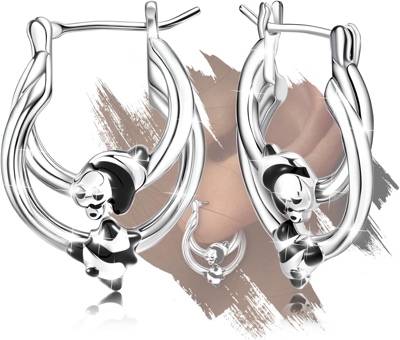 Trendy Sterling Silver Huggie Hoop Earrings for Women Dainty Animal Panda Cartilage Earring Charms White Gold Plated Hypoallergenic Jewelry for Sensitive Ears Birthday Gift for Women