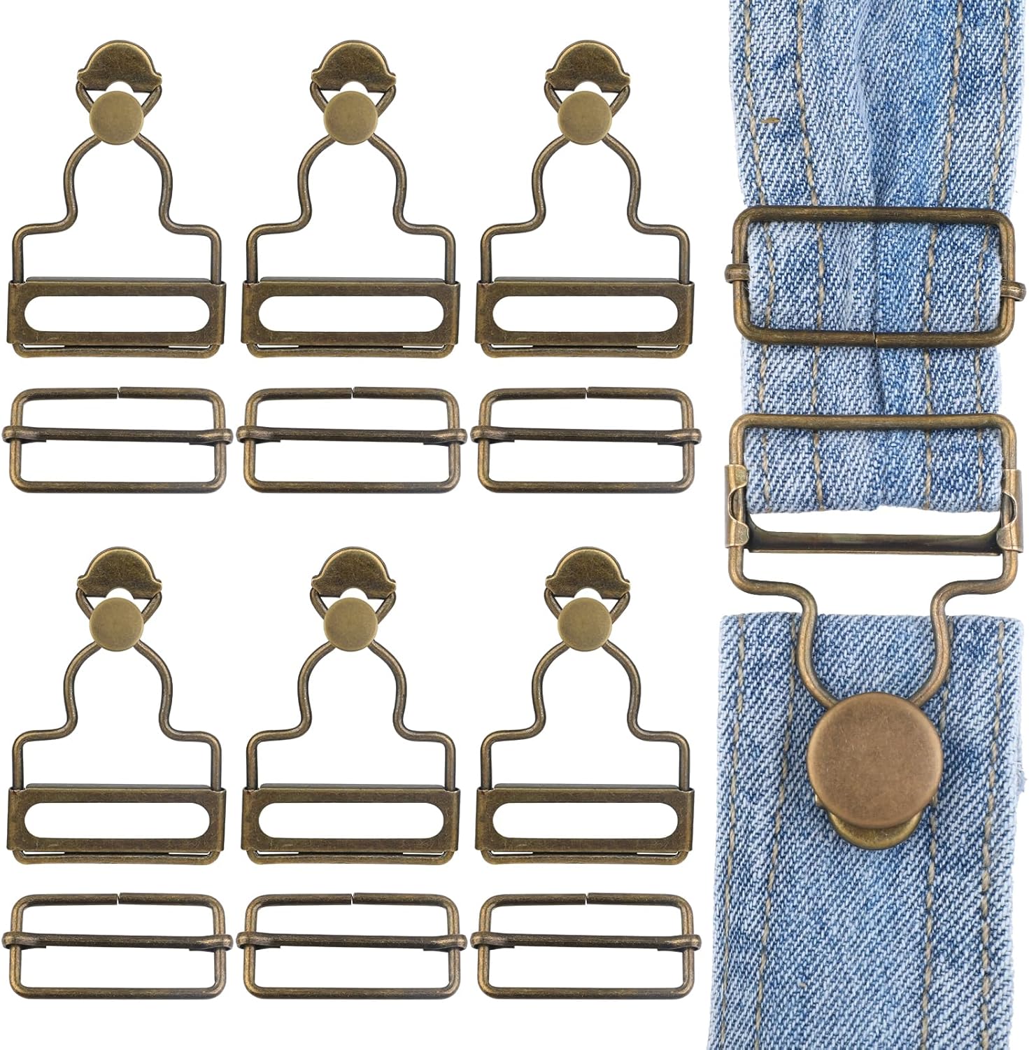6 Sets Overalls Buckles, 1.25 inch Metal Overall Replacement Clasp Clips with Adjustable Tri Glide Slide Buckle and Buttons, DIY Button No-Sew Accessories for Overall Bib Pants Trousers Jeans Jacket