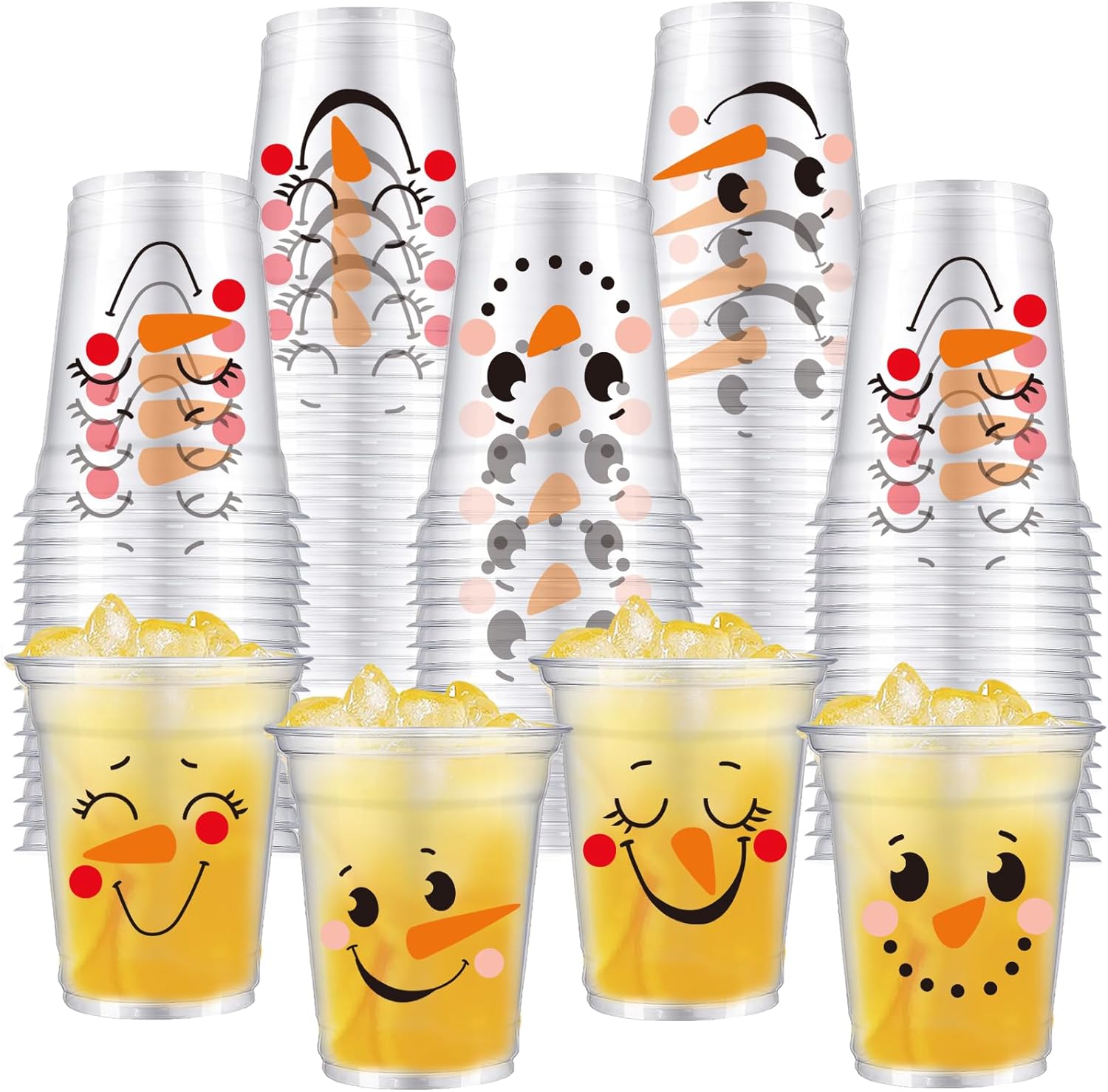 - Christmas Snowman Design: These clear plastic cups feature cute snowman in 4 different expressions, complete with a carrot nose, making them perfect for spreading holiday cheer at your Christmas parties.