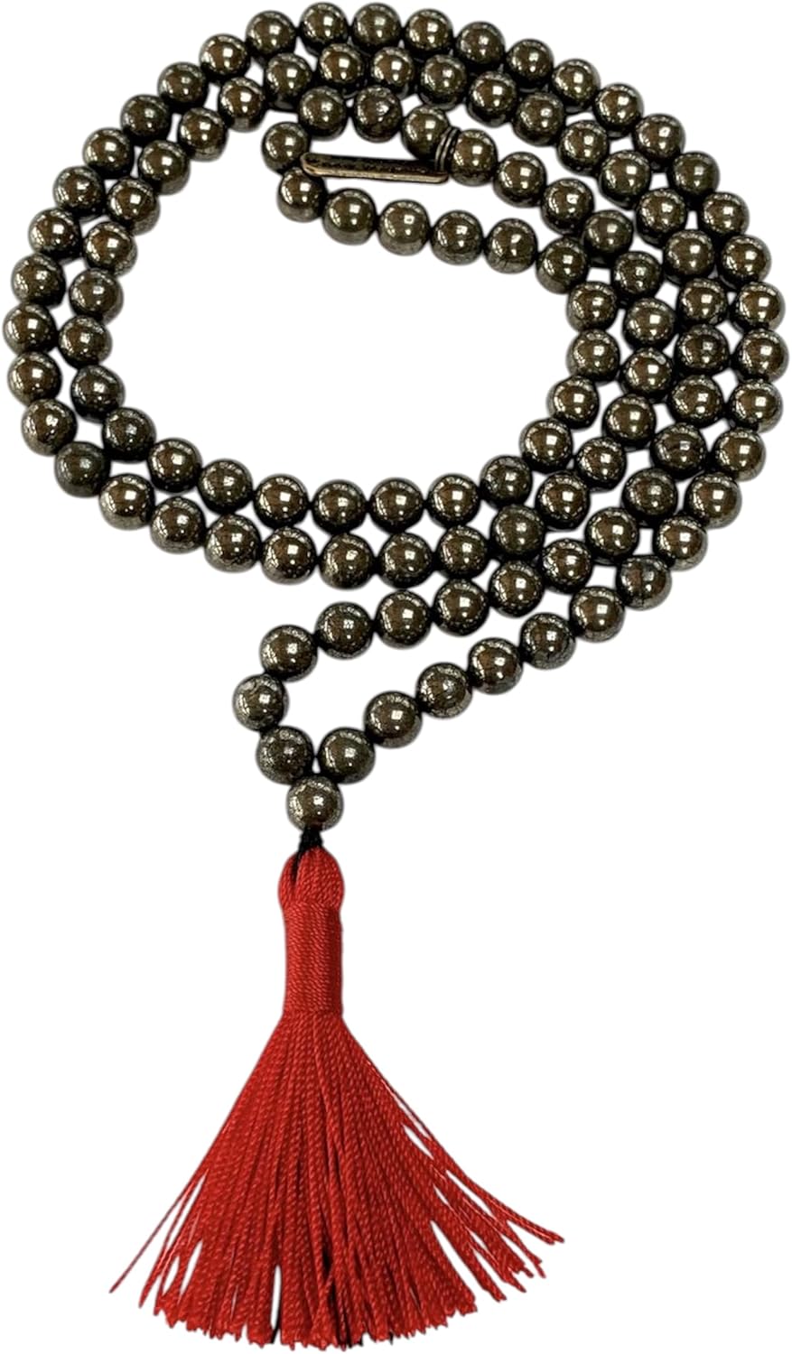 Pyrite Power Mala Necklace – 8mm 108 Beads for Strength & Energy