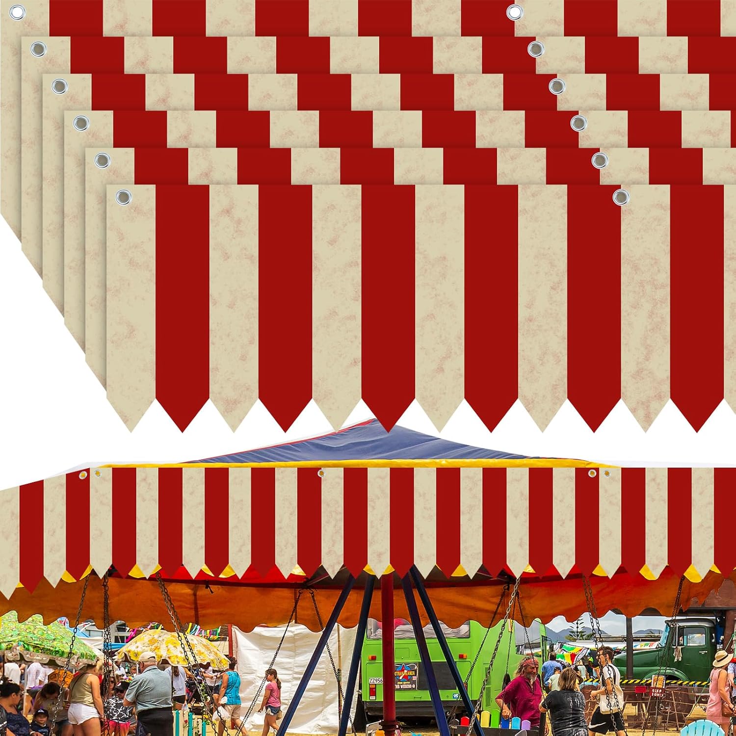 6 Pcs Creepy Carnival Tent Circus Carnival Hanging Decorations Banner Red White Striped Party Supplies for Halloween Theme Celebration, 9.84 x 78.74 In